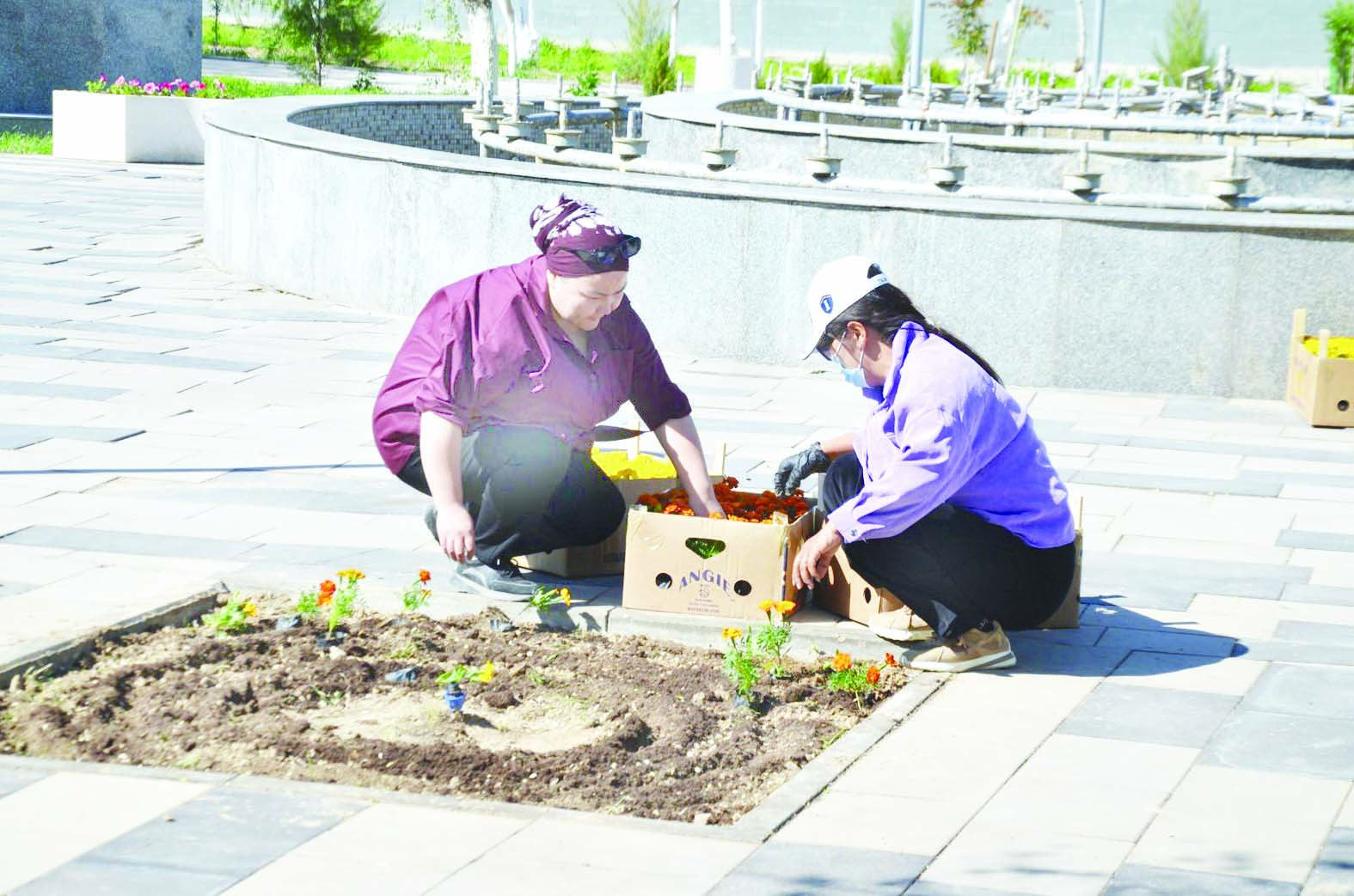 Кент орталығында әрлеу, сырлау-бояу, гүл егу, ағаш көшеттерін отырғызу сынды жұмыстар ауқымды түрде атқарылуда. Сонымен қатар жол жиектері, арық-атыздар, саябақтар мен демалыс орындары ретке келтіріліп, қоршаған ортаның тазалығын сақтау мақсатында жүйелі жұмыстар жүргізілуде.