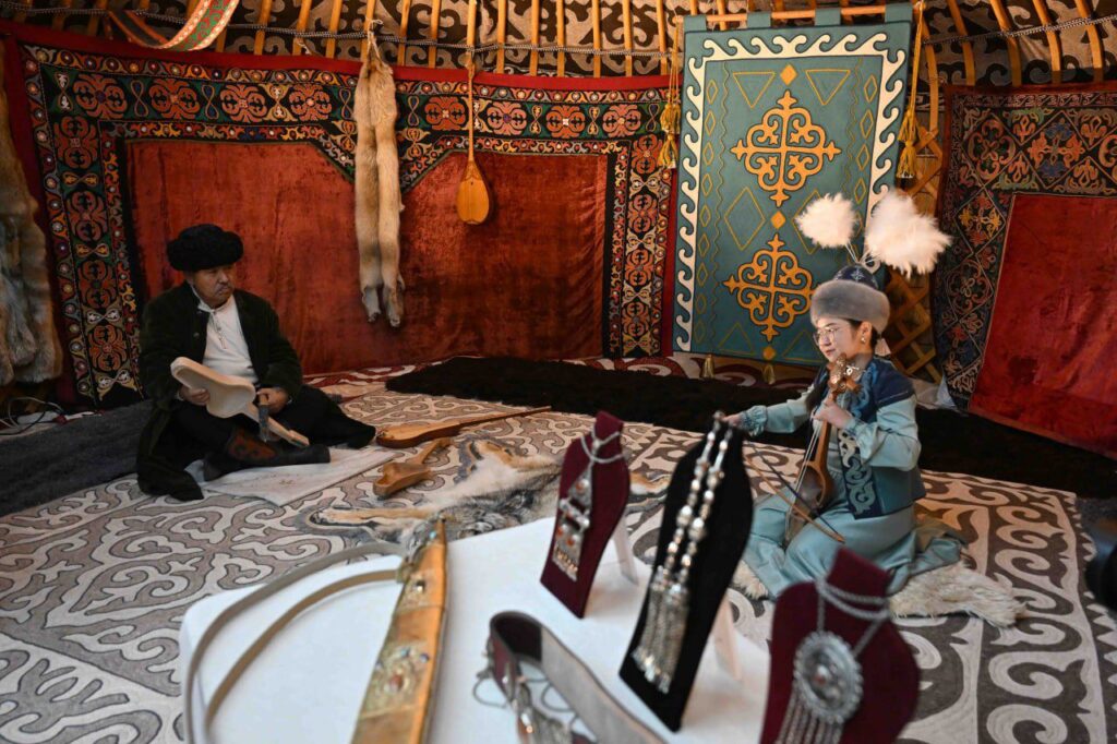 Резиденциядағы «Кыргыз айылы» этнографиялық кешенінде мәртебелі меймандарға қырғыз халқының тұрмыс-салты мен мәдениеті таныстырылды.